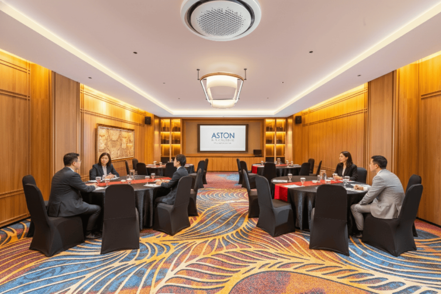 Beyond accommodations, Aston Cimone Hotel & Convention Center offers meeting and event spaces to support diverse professional and social needs. Bromo Meeting Room is equipped with videotron technology for meetings of 30–40 attendees, Krakatau Room is a versatile venue for meetings, dining, or worship with a capacity of up to 200 guests, and the Grand Mahameru Ballroom is a large hall accommodating up to 1,000 people, complete with a stage and sophisticated lighting.